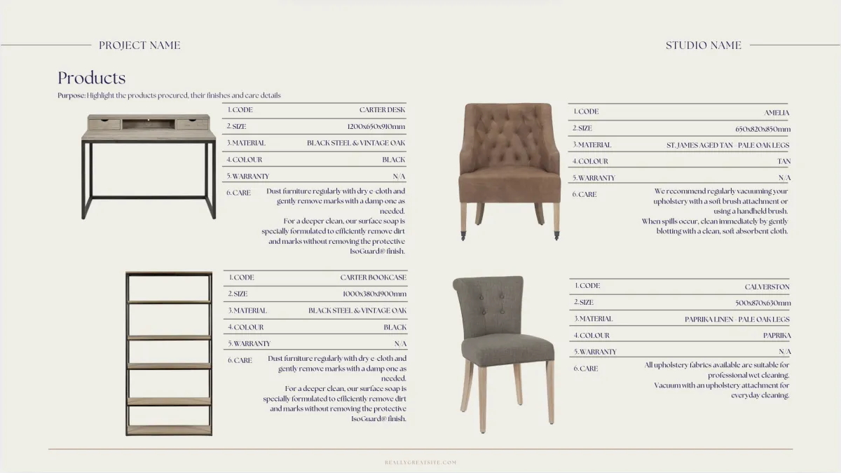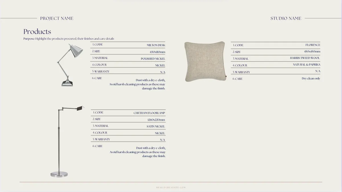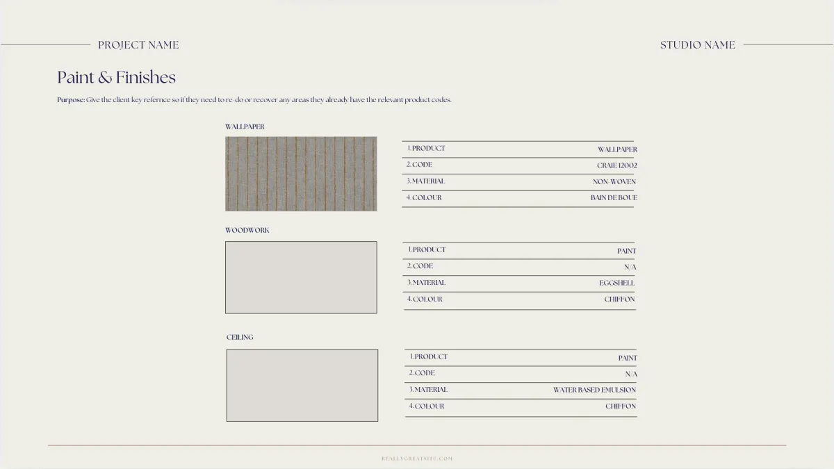 Ensure a seamless project completion with our Handover Document Template, a professional and fully customisable resource designed for interior designers to provide clients with all essential project details in one place.