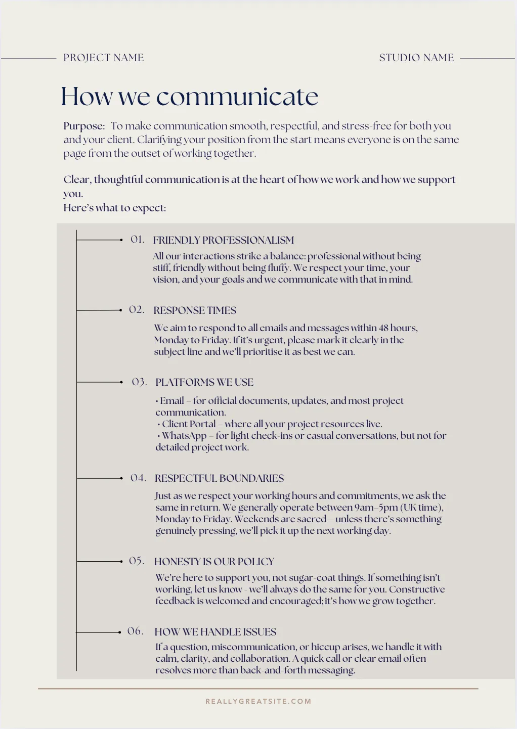 Communication Guidelines: Define how and when you’ll connect to avoid unnecessary back-and-forth.