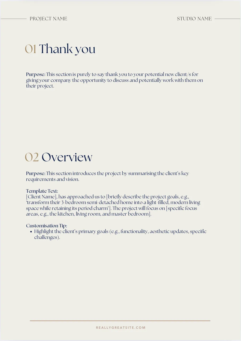 Streamline your interior design process with our comprehensive Project Proposal Template. Designed specifically for interior designers, this professional document ensures clear communication with clients from the start.
